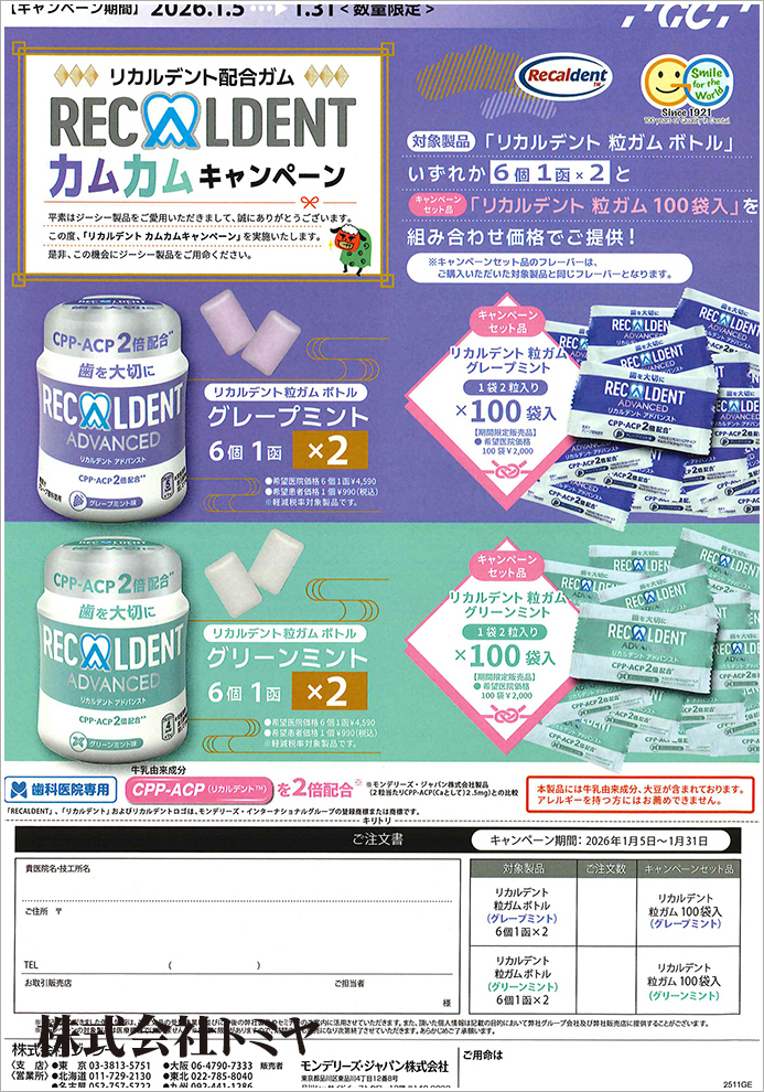 『リカルデント 粒ガム ボトル』いずれか6個1函×2と、キャンペーンセット品「リカルデント 粒ガム 100袋入」を組み合わせ価格でご提供します!