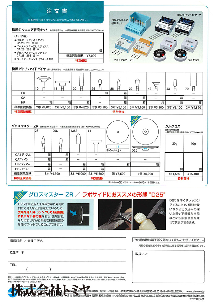 ジルコニア・二ケイ酸リチウム 鏡面研磨へ おススメの研削・研磨のステップを実現する商品を、特別価格でご提供いたします!