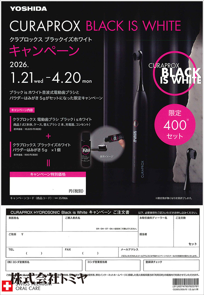 『ブラックisホワイト音波式電動歯ブラシ』と『パウダーはみがき 5g』がセットになったキャンペーンです!