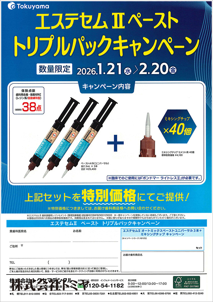 『エステセムⅡペースト』3本とミキシングチップ40個のセットを特別価格にてご提供いたします!