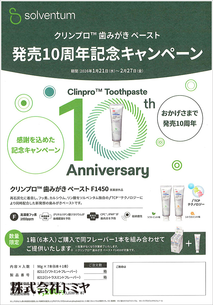 フッ素、カルシウム、リン酸をソルベンタム独自のfTCPテクノロジーにより同時配合した『クリンプロ歯みがきペーストF1450』のキャンペーンです!