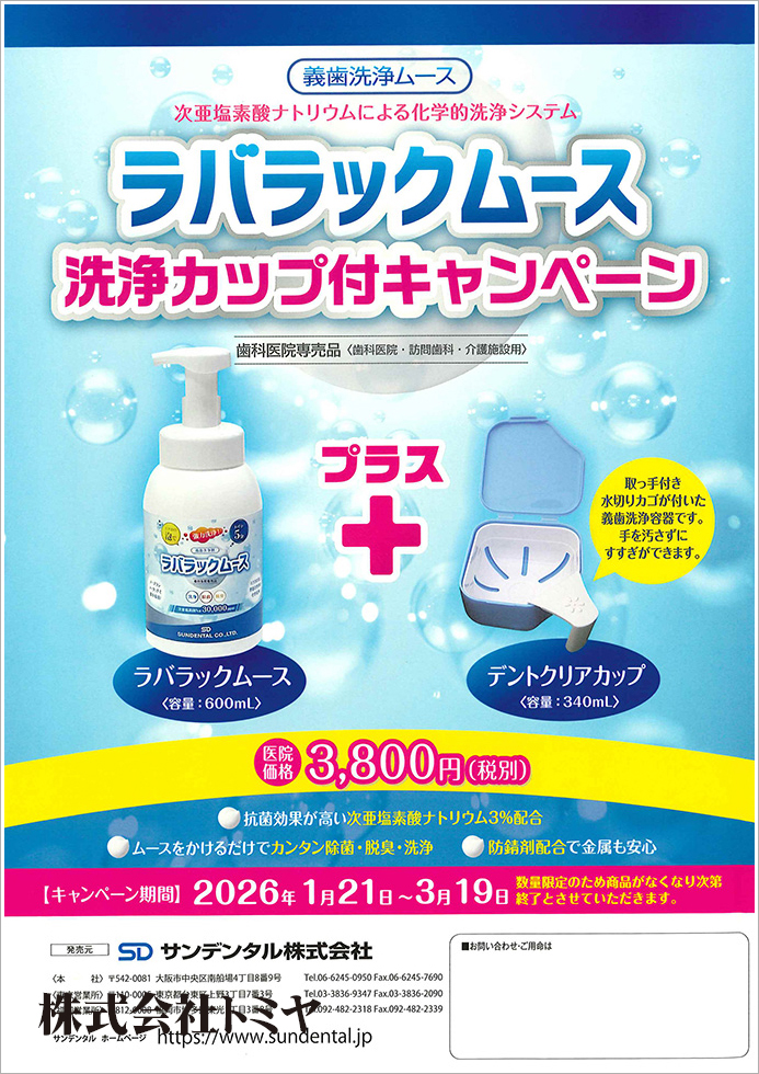 抗菌効果が高い次亜塩素酸ナトリウム3%を配合した『ラバラックムース』の洗浄カップ付キャンペーンです!