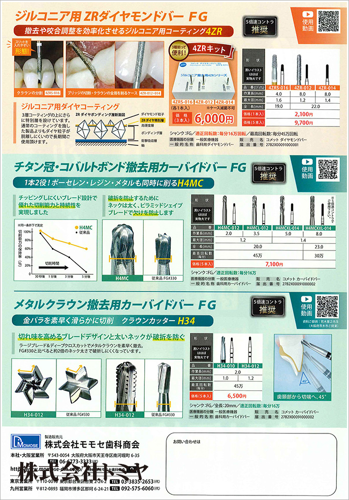 カーバイドバー『H34』『H4MC』、ダイヤモンドバー『4ZR』を特別価格でご提供いたします!