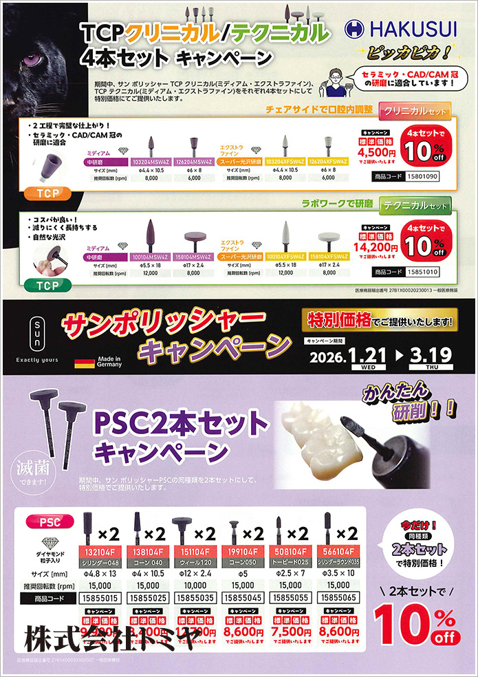 『マーリン ジルコニアカッター』『ウルフメタル クラウンカッター』のお試しキャンペーン、印象体・吸引除菌キャンペーンを実施します!