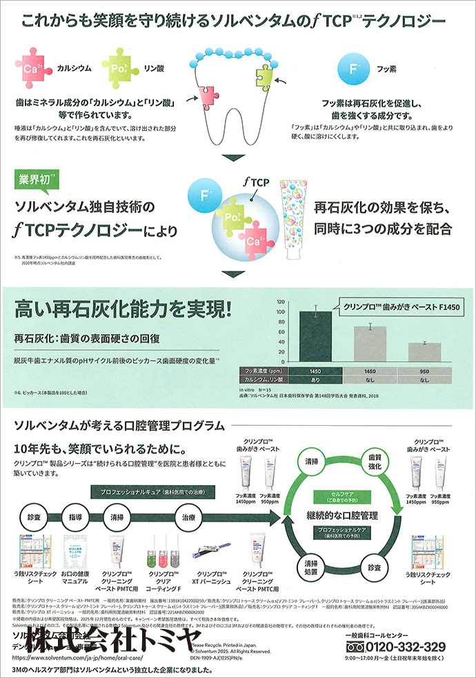 フッ素、カルシウム、リン酸をソルベンタム独自のfTCPテクノロジーにより同時配合した『クリンプロ歯みがきペーストF1450』のキャンペーンです!